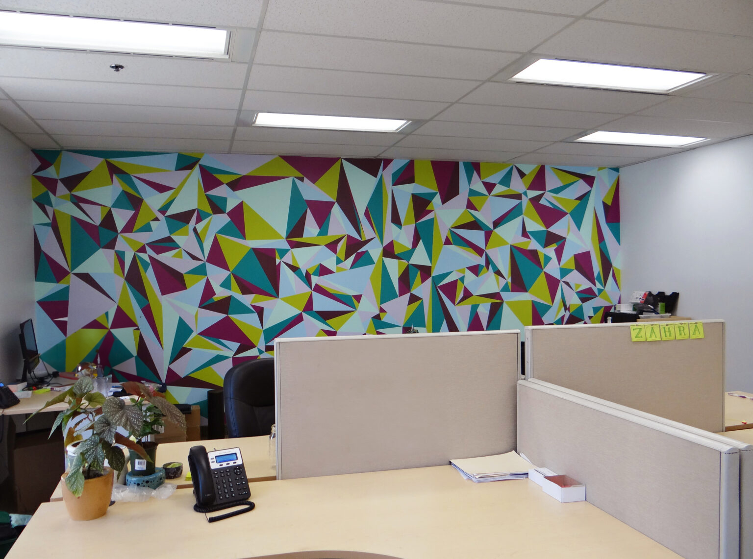 Peinture murale intérieure de 6 mètres x 2,5 mètres pour l’open space d’une entreprise